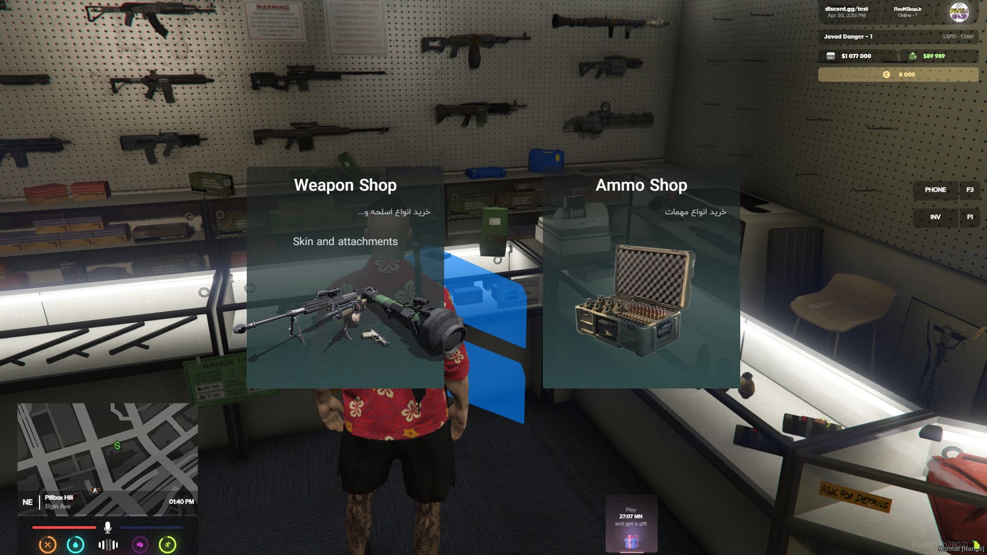 در ضمن ، ما اهمیت زیادی به ظاهر و رابط کاربری سرور دادیم ، حتی برای Menu های اسلحه فروشی نیز همانند فروشگاه ماشین ، از ظاهر و انیمیشن استفاده شده: